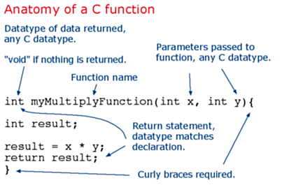 There are two required functions in an Arduino sketch, setup() and loop(). Other functions must be created outside the brackets of those two functions. As an example, we will create a simple function to multiply two numbers.